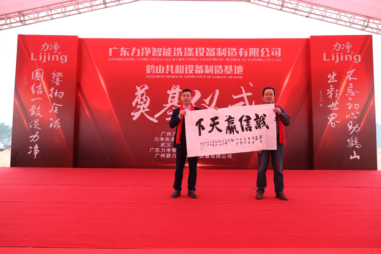 1月20日,位于鶴山工業城的廣東力凈智能洗滌設備有限公司設備制造基地擂響戰鼓,隆重舉行奠基儀式。